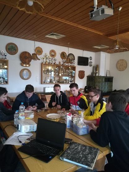 Mit frischen Obst, Joghurt, Milch oder Saft und Cerealien bereiteten die Sportler verschiede Varianten an Mineralstoff- und Vitaminreiche Speisen zu. Zum Thema Ernährung zählt natürlich auch die Flüssigkeits- aufnahme. Trinke das Richtige zum rechten Zeitpunkt. Die leckeren Speisen wurden dann noch am Nachmittag, nach dem ersten Schießtraining probiert. Übrig blieb dabei nicht mehr viel. Zu dem Thema Ernährung konnte Thomas ein umfangreiches Handout verteilen.